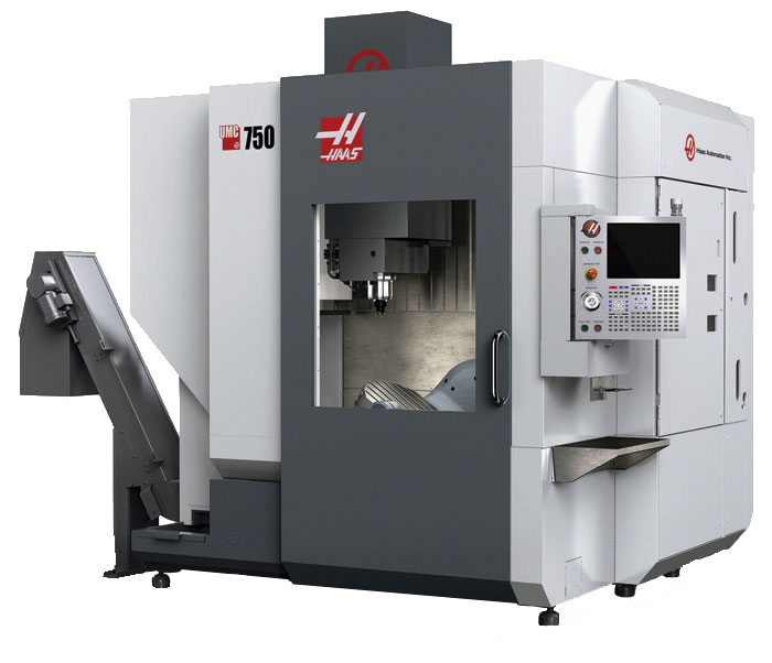 The UMC-750SS has an integrated high-speed, dual-axis trunnion table with a 500 mm diameter platter that features standard T-slots and a precision pilot bore for fixturing versatility. The trunnion provides +120 and -35 degrees of tilt and 360 degrees of rotation to provide excellent tool clearance and large part capacity.